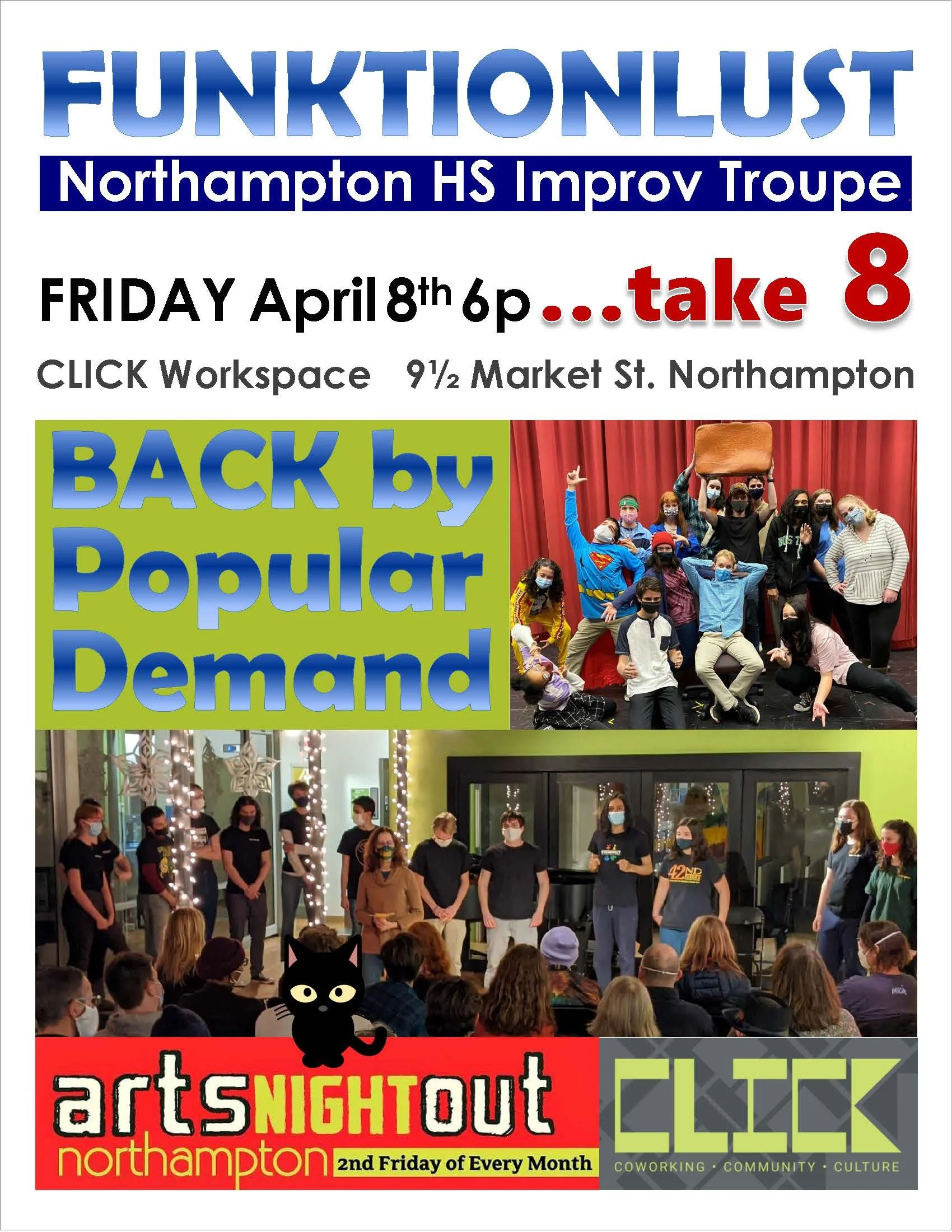 Join us for FUNKTIONLUST - Northampton High School’s Improv Troupe - on Friday April 8th, 2022 at 6:00pm